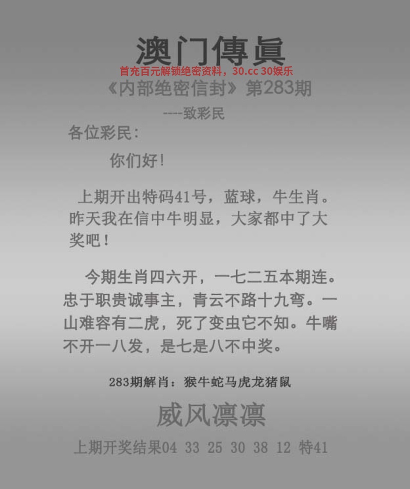 283期:三行中特【金火】开:鸡45中