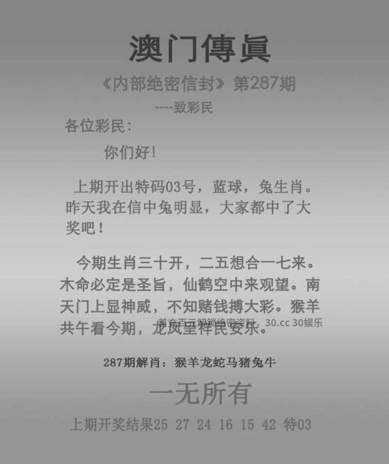 287期:三行中特【木水】开:猴34中